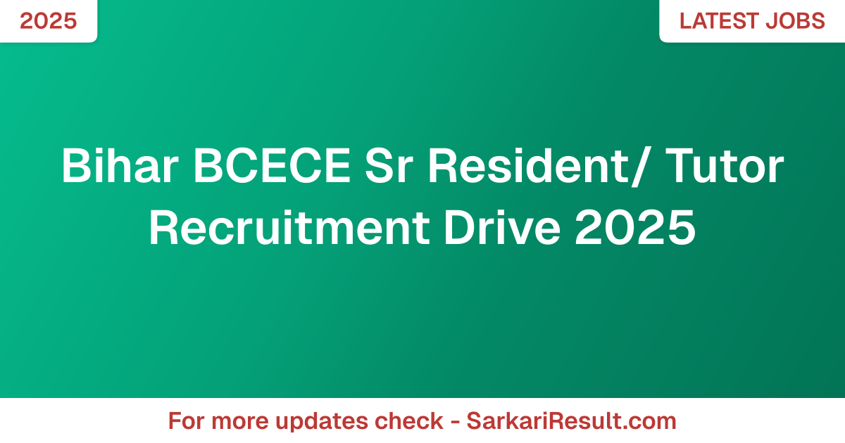Bihar BCECE Sr Resident/ Tutor Recruitment Drive 2025