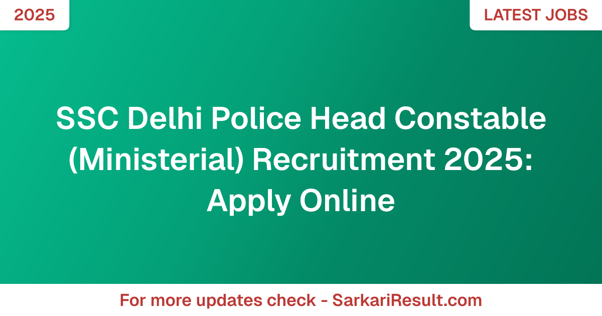 SSC Delhi Police Head Constable (Ministerial) Recruitment 2025: Apply Online