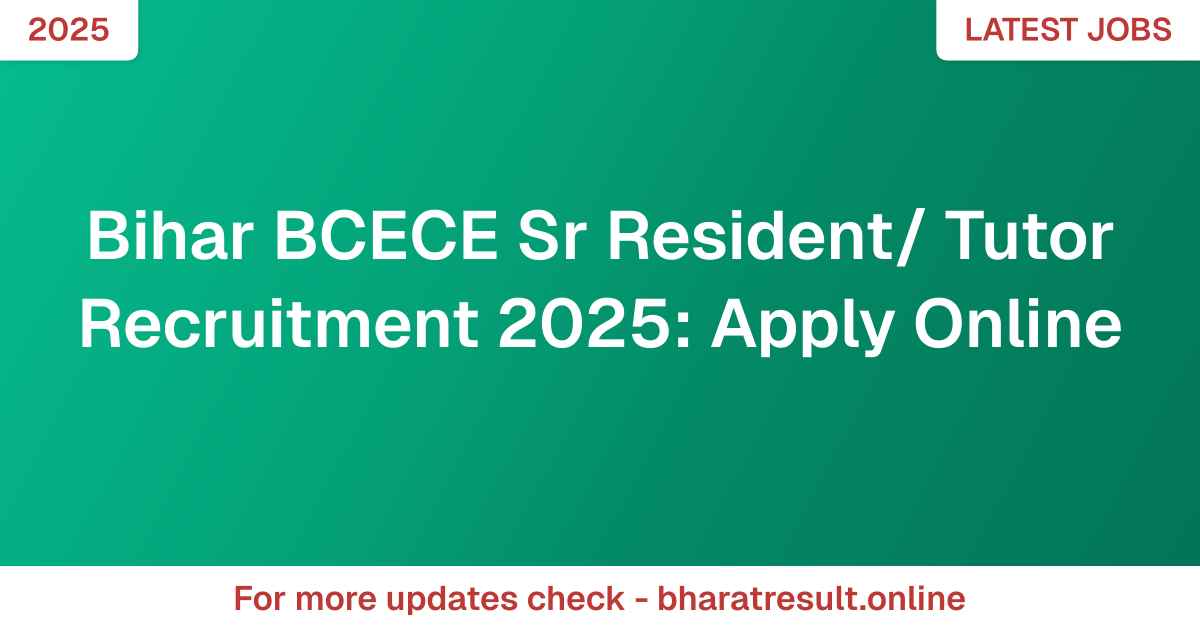 Vacancy Details: Bihar BCECE Sr Resident/ Tutor Recruitment 2025