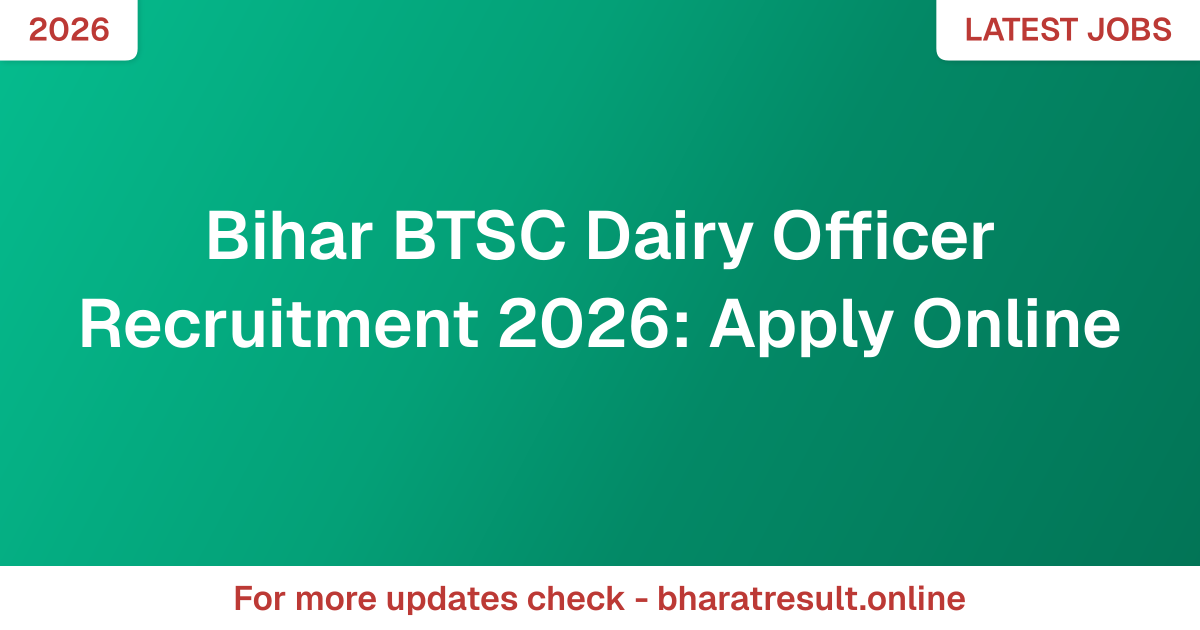 Bihar BTSC Dairy Officer Recruitment 2026: Apply Online