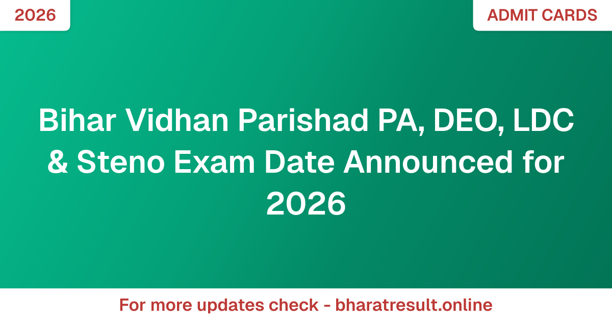 Bihar Vidhan Parishad PA, DEO, LDC & Steno Exam Date Announced for 2026