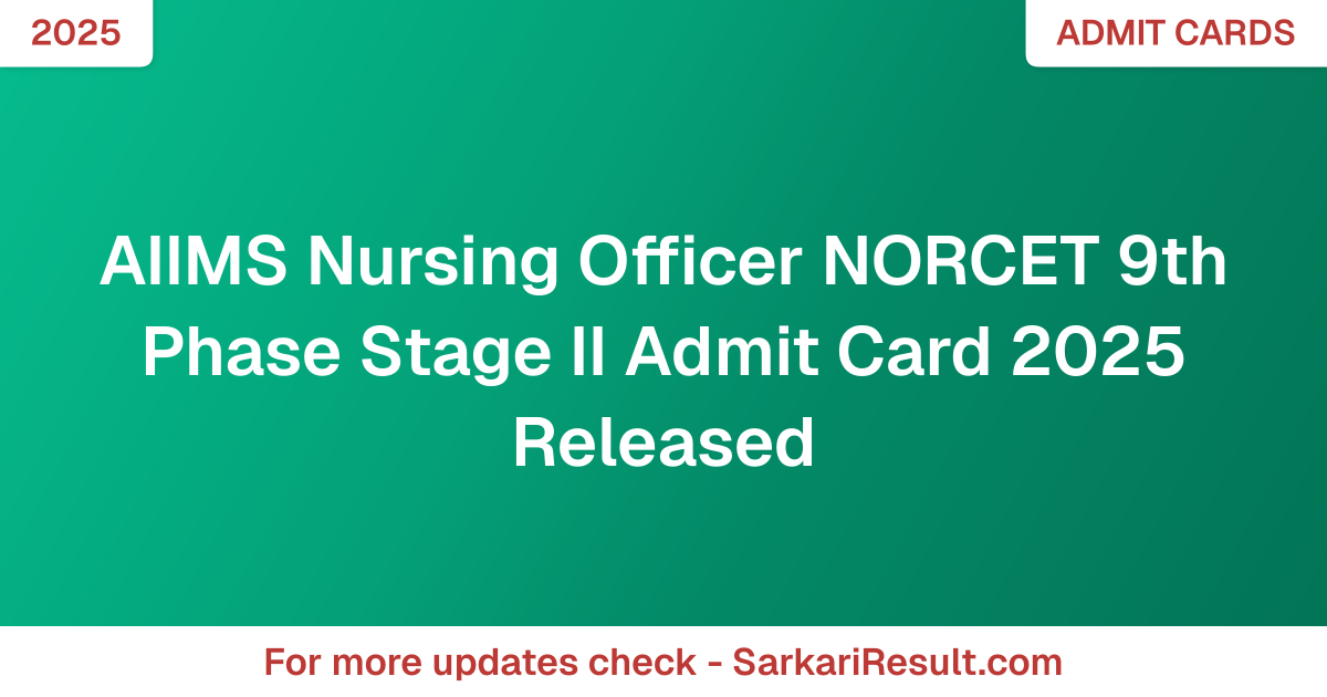 AIIMS Nursing Officer NORCET 9th Phase Stage II Admit Card 2025 Released