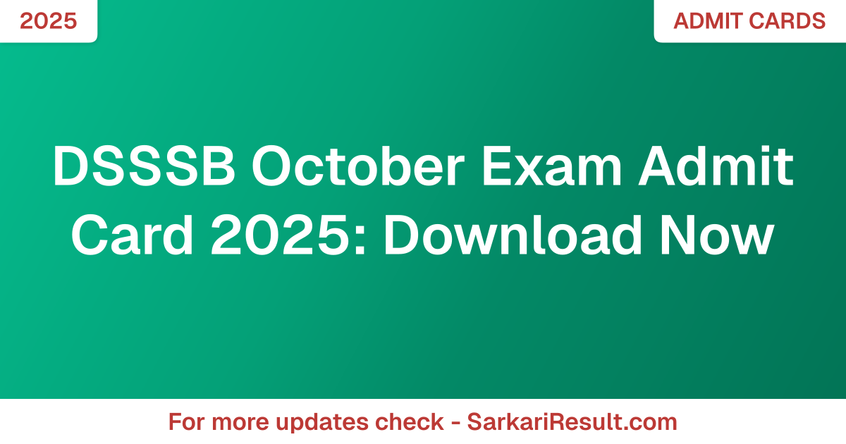 DSSSB October Exam Admit Card 2025: Download Now