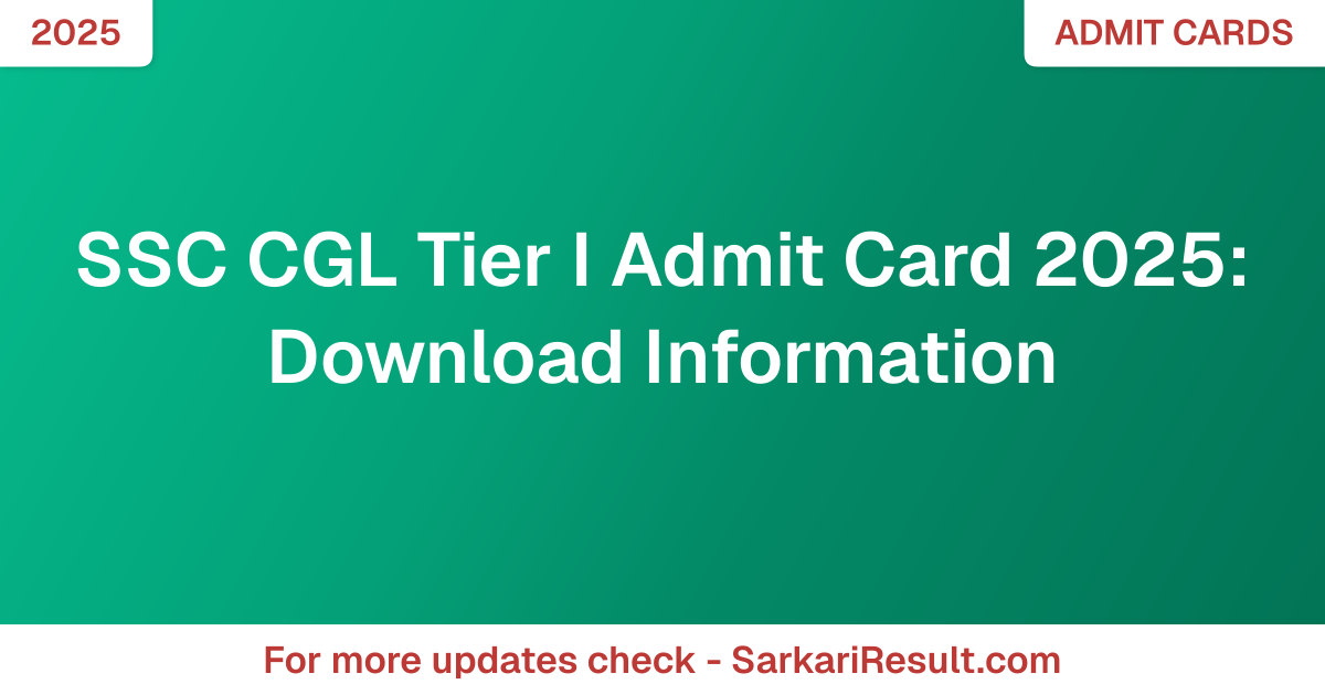 SSC CGL Tier I Admit Card 2025: Download Information