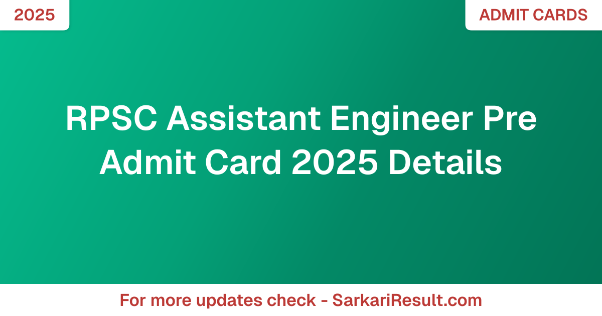RPSC Assistant Engineer Pre Admit Card 2025 Details