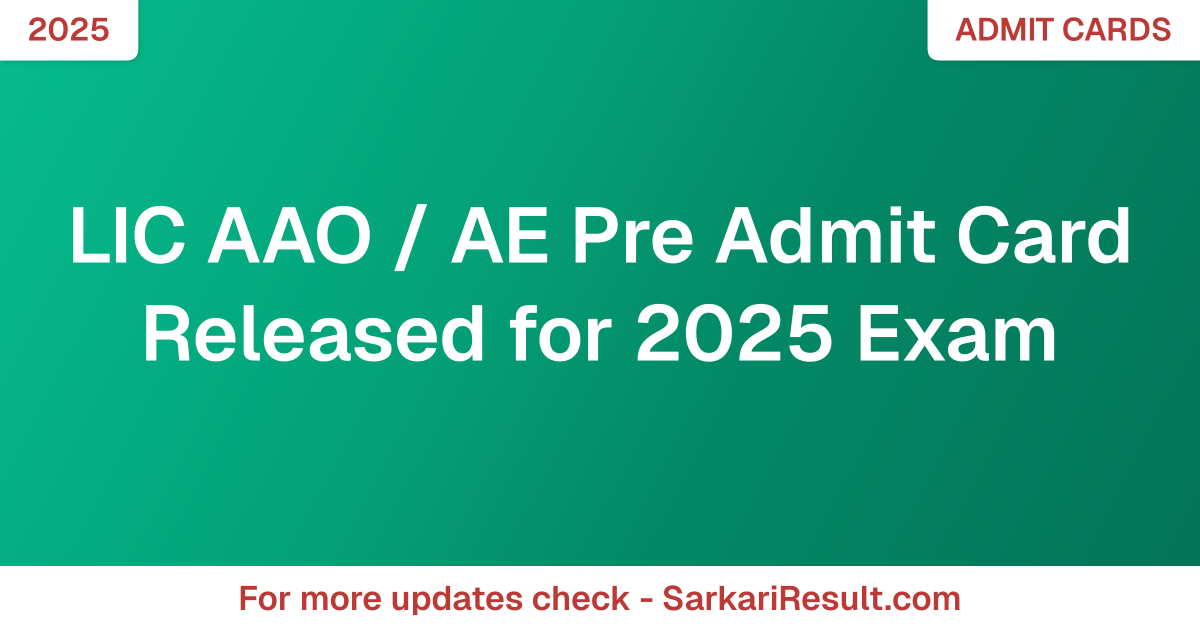 LIC AAO / AE Pre Admit Card Released for 2025 Exam