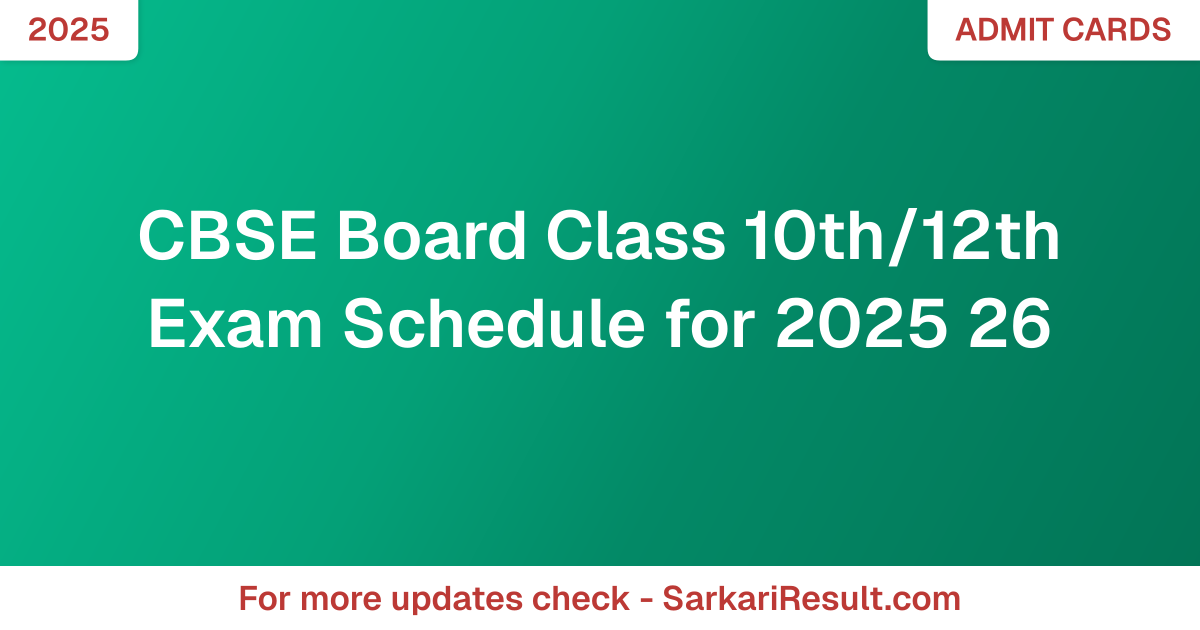 CBSE Board Class 10th/12th Exam Schedule for 2025 26