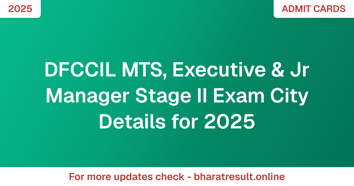 DFCCIL MTS, Executive & Jr Manager Stage II Exam City Details for 2025
