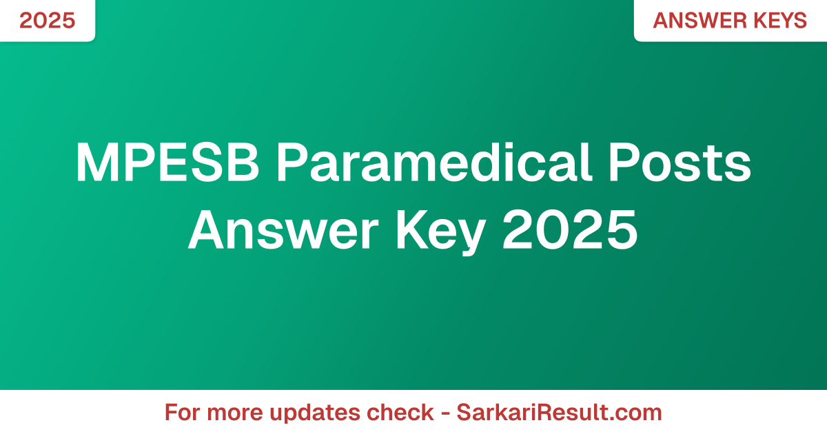 The Madhya Pradesh Employee Selection Board (MPESB) has published the Answer Key on its official website for the Various Paramedical Post Examination 2025 Ca...