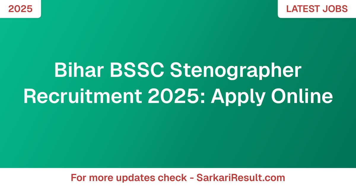Bihar BSSC Stenographer Recruitment 2025: Apply Online