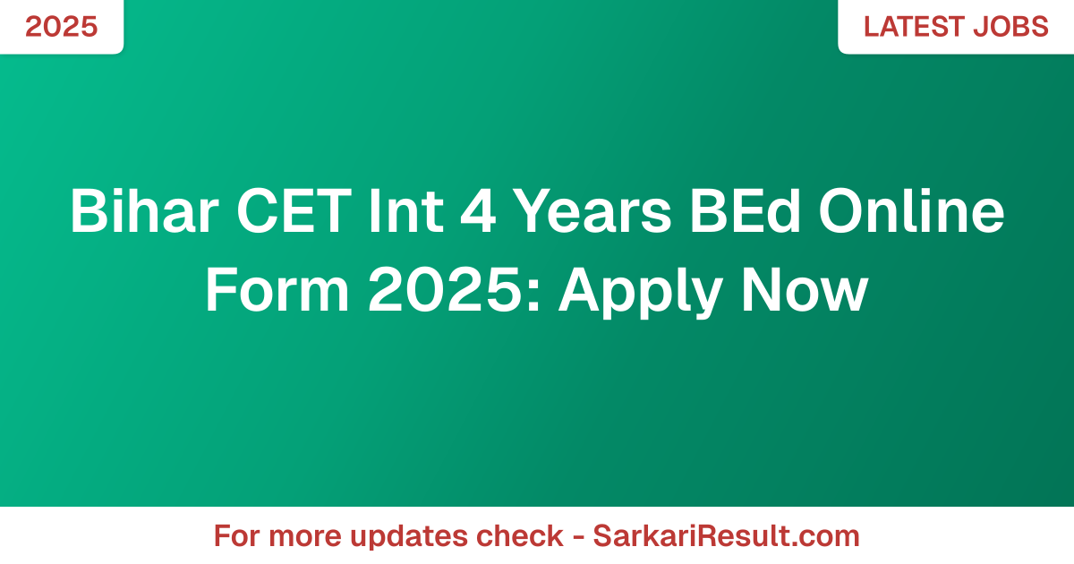 Bihar CET Int 4 Years BEd Online Form 2025: Apply Now