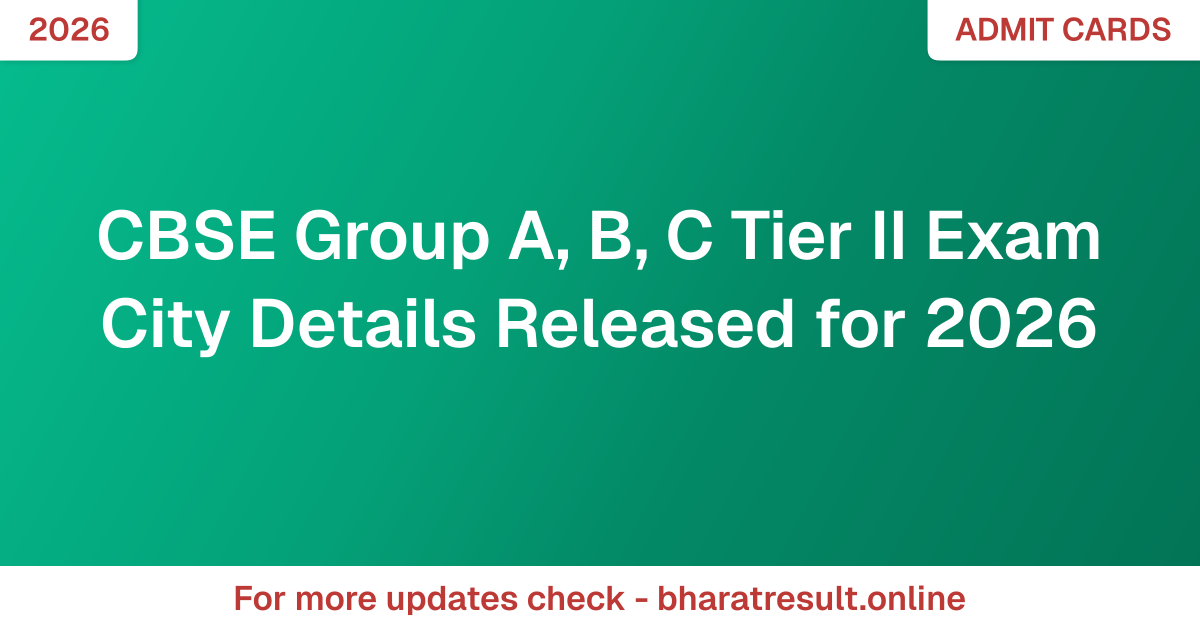 CBSE Group A, B, C Tier II Exam City Details Released for 2026