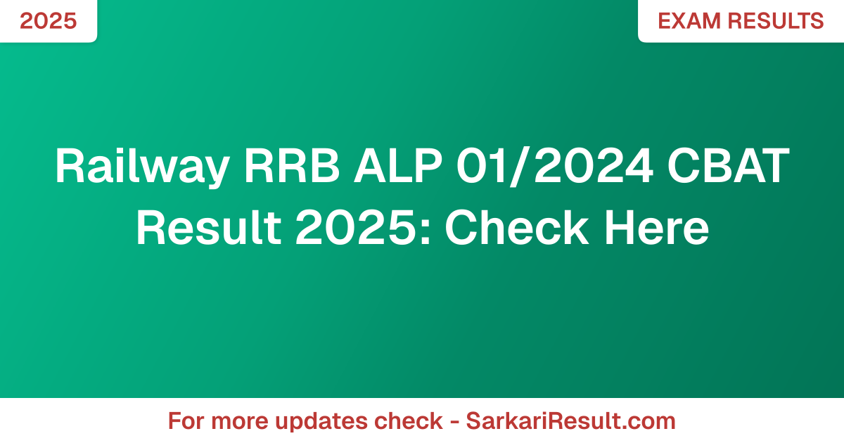 Railway RRB ALP 01/2024 CBAT Result 2025: Check Here
