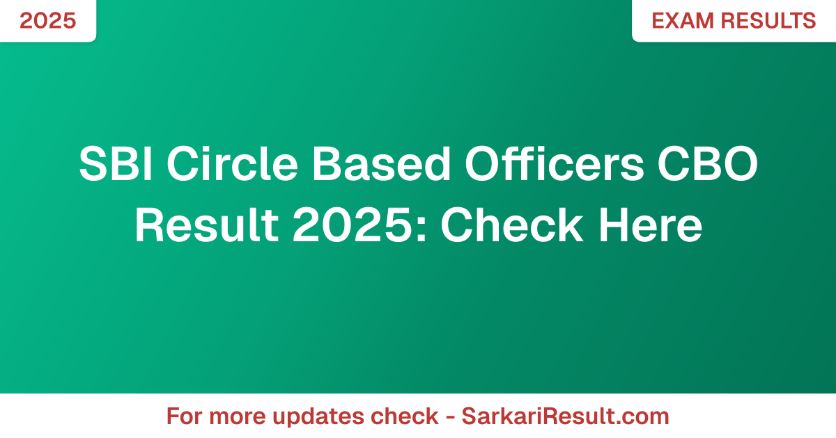 SBI Circle Based Officers CBO Result 2025: Check Here