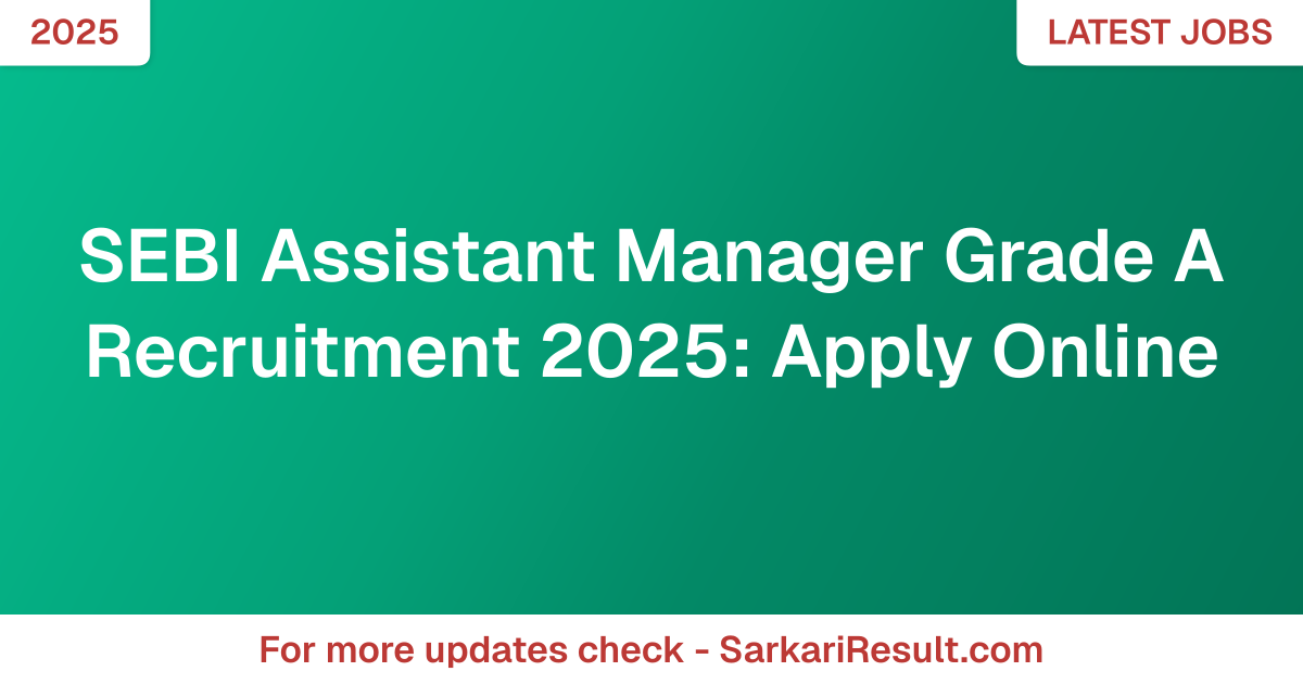 SEBI Assistant Manager Grade A Recruitment 2025: Apply Online