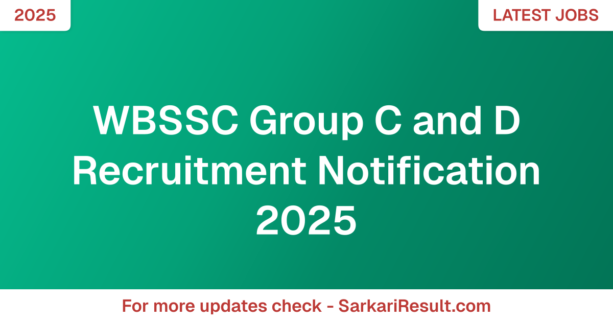 WBSSC Group C and D Recruitment Notification 2025